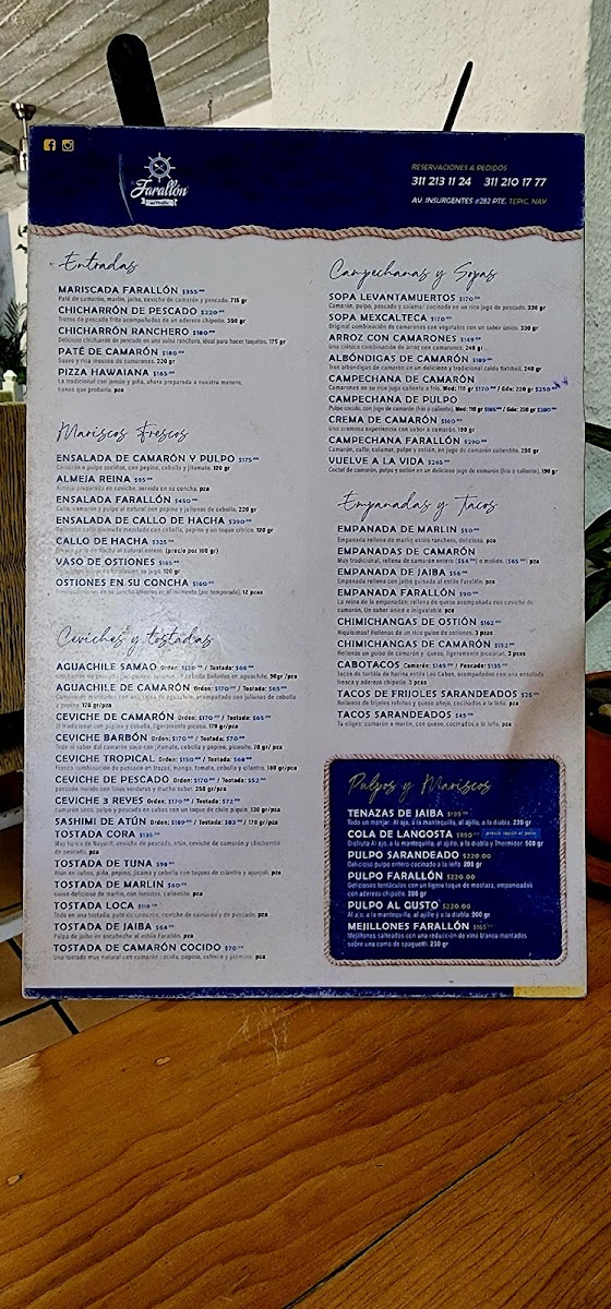 Welcome to El Farallon Del Pacifico, a culinary gem located in the heart of Tepic, Mexico. This vibrant eatery offers a remarkable menu that showcases the rich flavors of coastal cuisine. The standout dishes include the Zarandeado Costilla de Cerdo, a wood-cooked pork rib paired with jalapeños, onions, and homemade salsas, and the succulent Camarones Zarandeados served with a refreshing aguachile sauce.